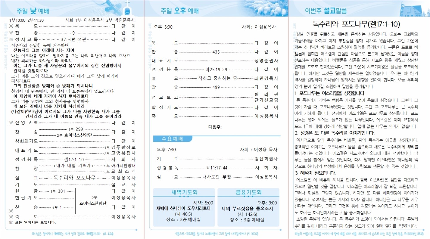 ´ÙÀ½ÁÖºÎÅÍ Ã»³âºÎ¿¹¹è¸¦ 1Ãþ ¿¹¹è½Ç¿¡¼ ¿ÀÈÄ1½Ã30ºÐ¿¡ µå¸³´Ï´Ù.